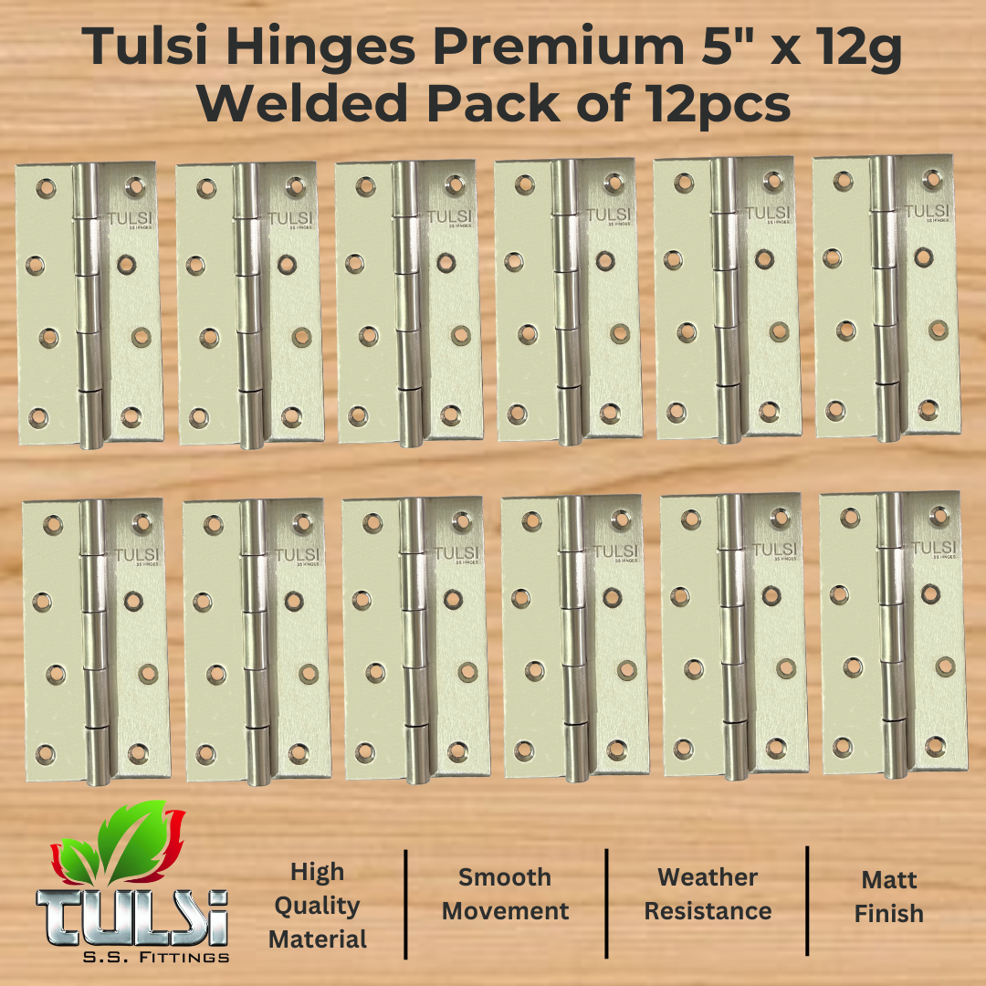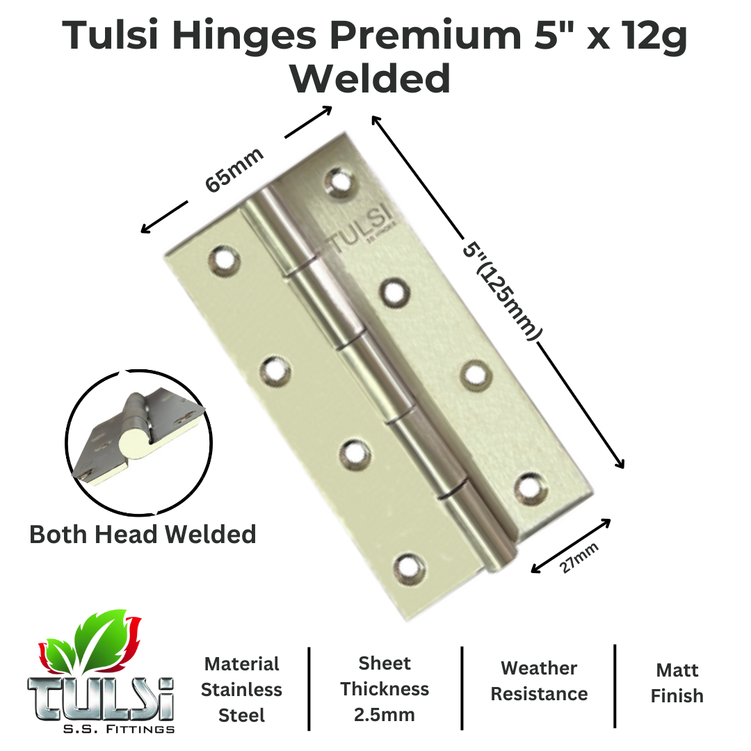 Tulsi Metal Works proudly presents S S Door Hinges Premium 5″ x 12g Welded, crafted from high-quality Jindal stainless steel for unmatched strength, durability, and performance. If you are looking for reliable S S Door Hinges for residential or commercial projects, this set is the perfect choice.